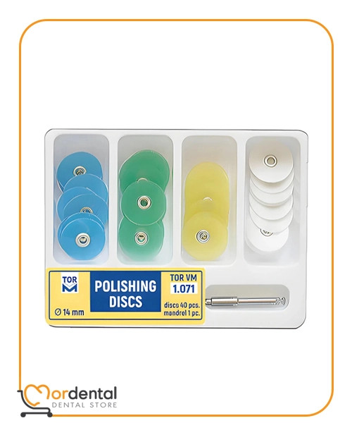 کیت دیسک پرداخت بدون مرکز تور وی ام TOR-VM، ابزاری حرفهای در دندانپزشکی است که برای پرداخت و صیقل دادن ترمیمهای کامپوزیتی و سطوح دندانی استفاده میشود. این کیت شامل دیسک های چهار رنگ با درجات مختلف زبری است و به دلیل طراحی بدون مرکز، کنترل و دقت بیشتری را برای پرداخت نواحی حساس فراهم میکند. محصول کیت دیسک پرداخت بدون مرکز تور وی ام TOR-VM با 40 عددی آسورت از هر رنگ، رنگ آبی (زبر)، سبز (متوسط)، زرد (نرم) و سفید (خیلی نرم) عرضه می شود.