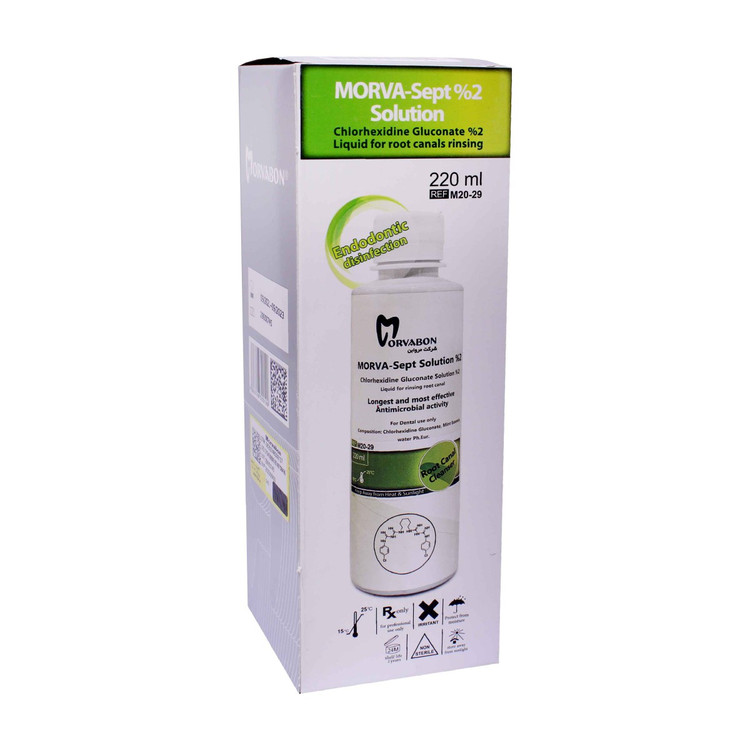 از این محلول برای آماده نمودن کانال ریشه، حفره ها، شستشوی آن ها و برداشتن دبری ها استفاده می گردد. در ادامه ویژگی های محلول کلرهگزیدین 2% مروابن محصول کشور ایران را شرح می دهیم.